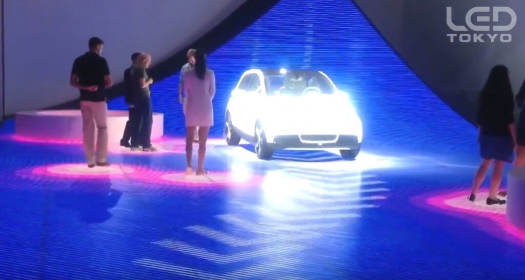 床面LEDビジョンは、イベントでの演出だけでなく、スポーツの試合や、アートの世界など様々なところで導入が進んでいます。床面LEDビジョン(フロアビジョン)は特殊強化ガラスを用いているため、車が乗っても問題のない耐久性があります。