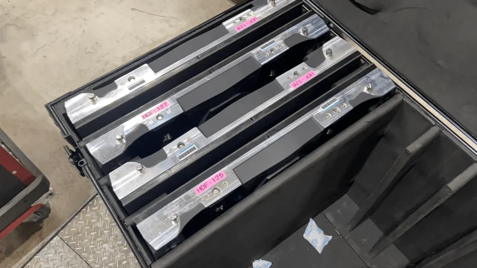 運んでいる最中にLEDビジョンが破損しないように、写真のように箱内に仕切りられて収納されています。