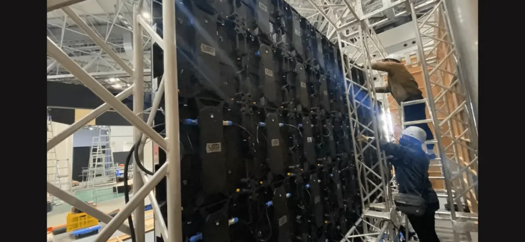 今回は展示会で使用するLEDビジョンの設営現場に潜入してきました!LEDビジョンが設置されていく様子を皆さんに公開したいとおもいます!