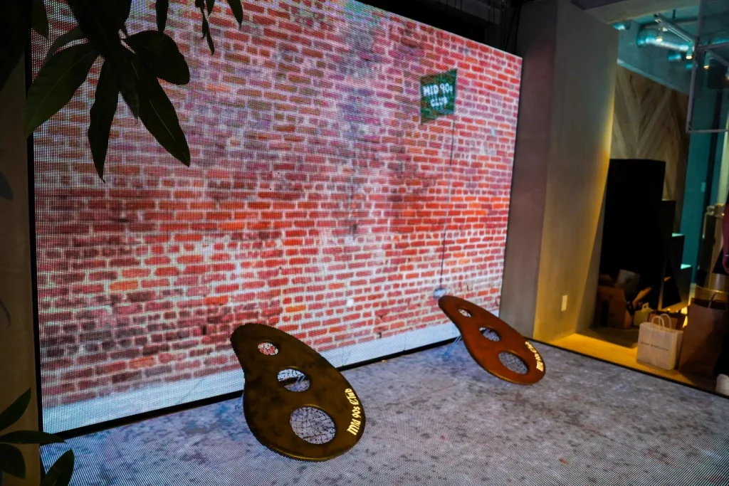 いつもの「 mid 90s Club」とは異なる世界観を演出したく、ショールームのLEDビジョンを使用していつもとは異なる世界観の演出を行いました。