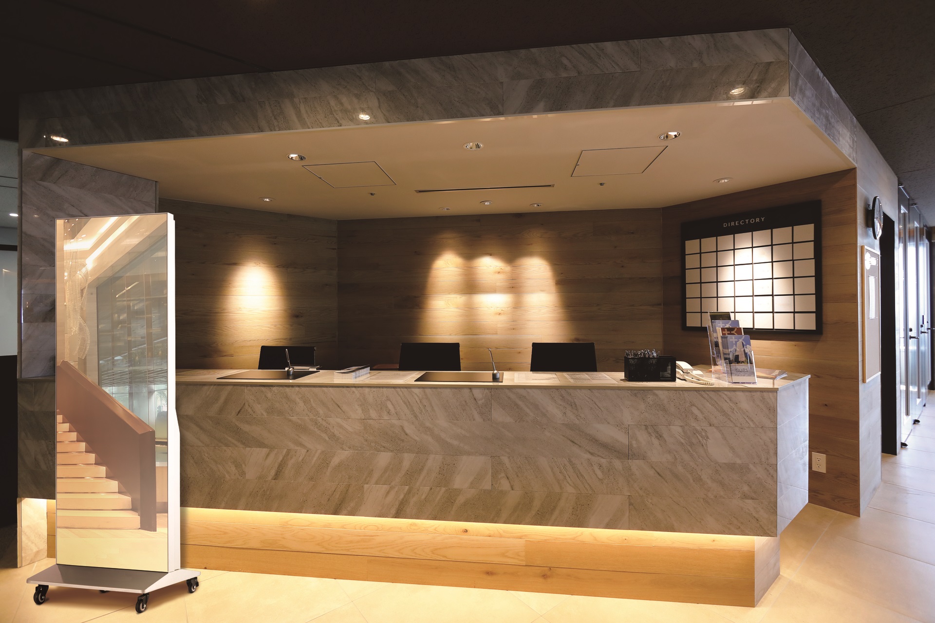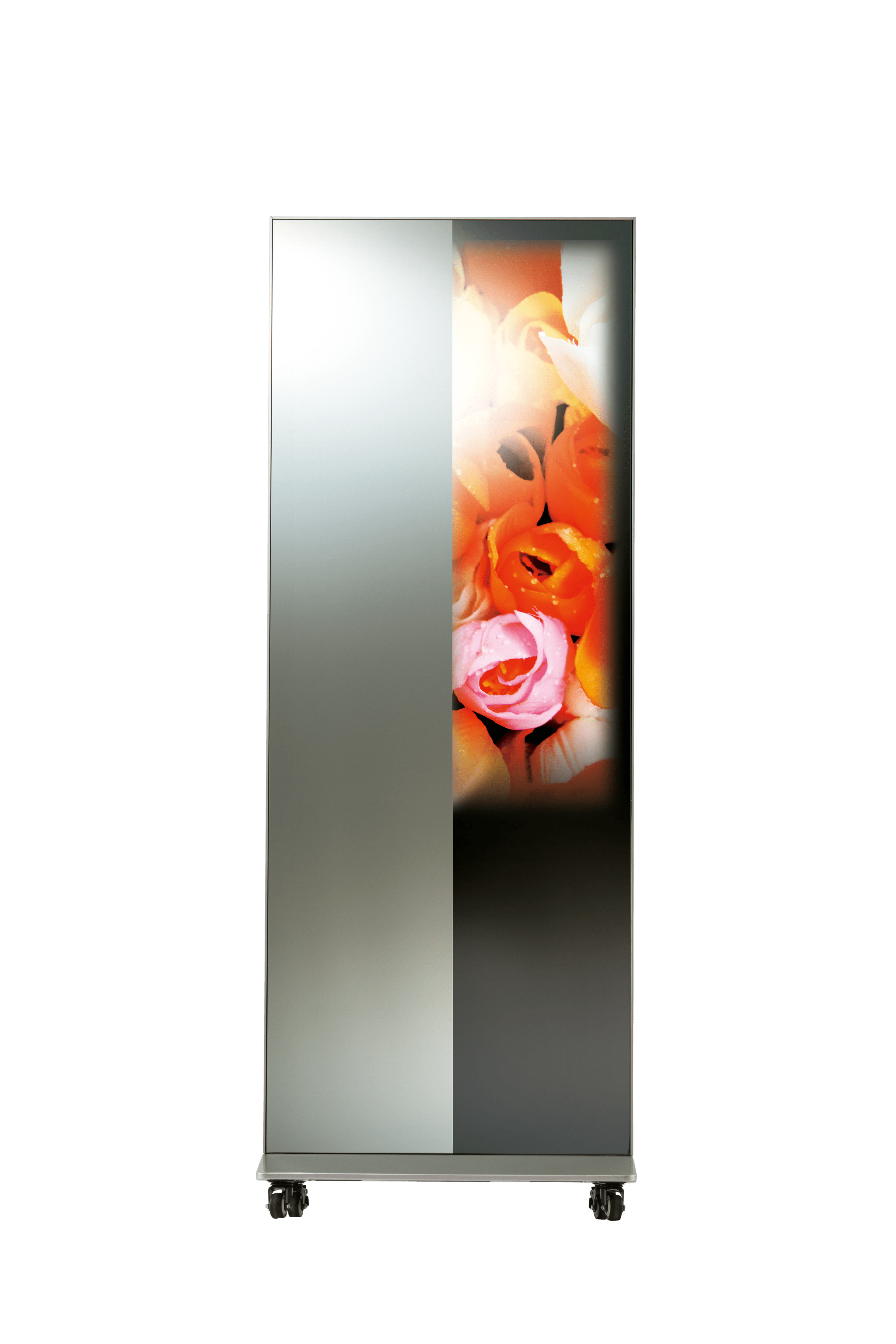 - ディスプレイの電源が入っていない場合は鏡として、電源がONであればサイネージとしての利用が可能になります。