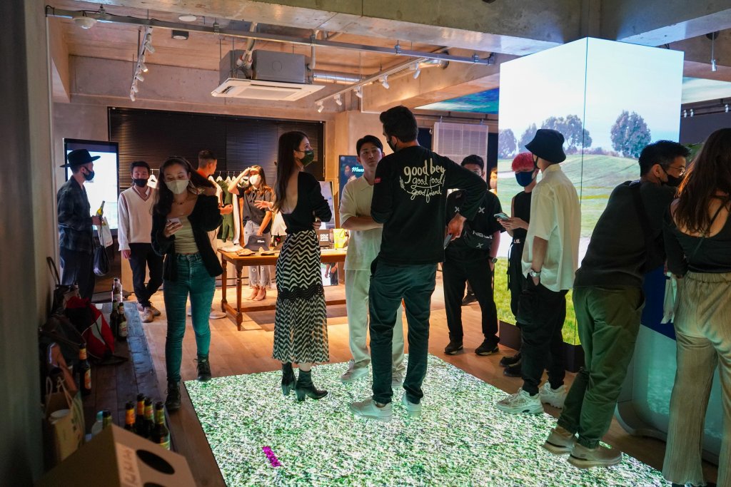 同事務所では空間の仕切りとなる壁にLEDビジョンを導入しています。画面にはホワイトをベースとした華やかな模様が映し出され、各スペースを美しく彩っています。