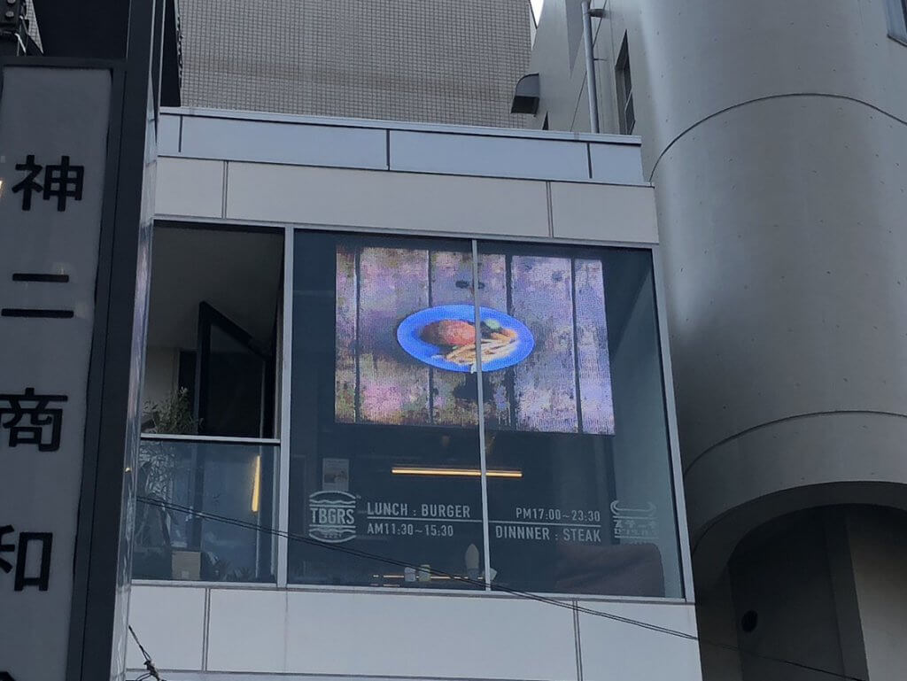 鈴木)大きな窓面があったので、ちょうど取り扱っていた、シースルーのウィンドウビジョン(LEDビジョン)をここに付けたらちょうどよいと思ったんです。
