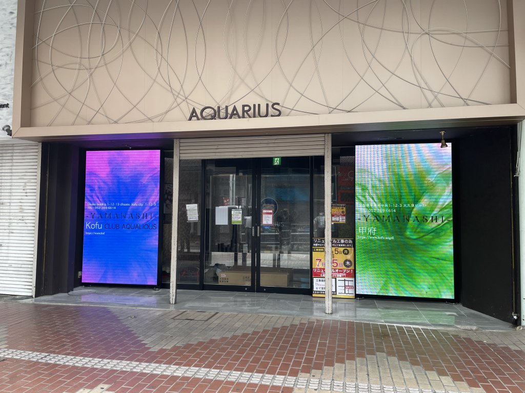 山梨県甲府最大の繁華街・春日通りに位置する「AQUARIUS」のエントランス部分にLEDビジョンを導入しました。