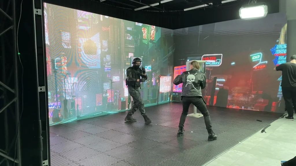 イベントでは、LEDビジョンの前で実際に演者がアクションを行い、観客はその場での景色とカメラを通した映像を同時に見ることができる演出を行いました。