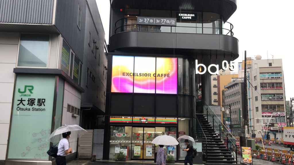 JR大塚駅北口から徒歩1分、地上8階建て駅前店舗ビルの2F,3F部分に、2020年7月9日、エクセルシオールカフェ大塚駅前店がオープンしました。