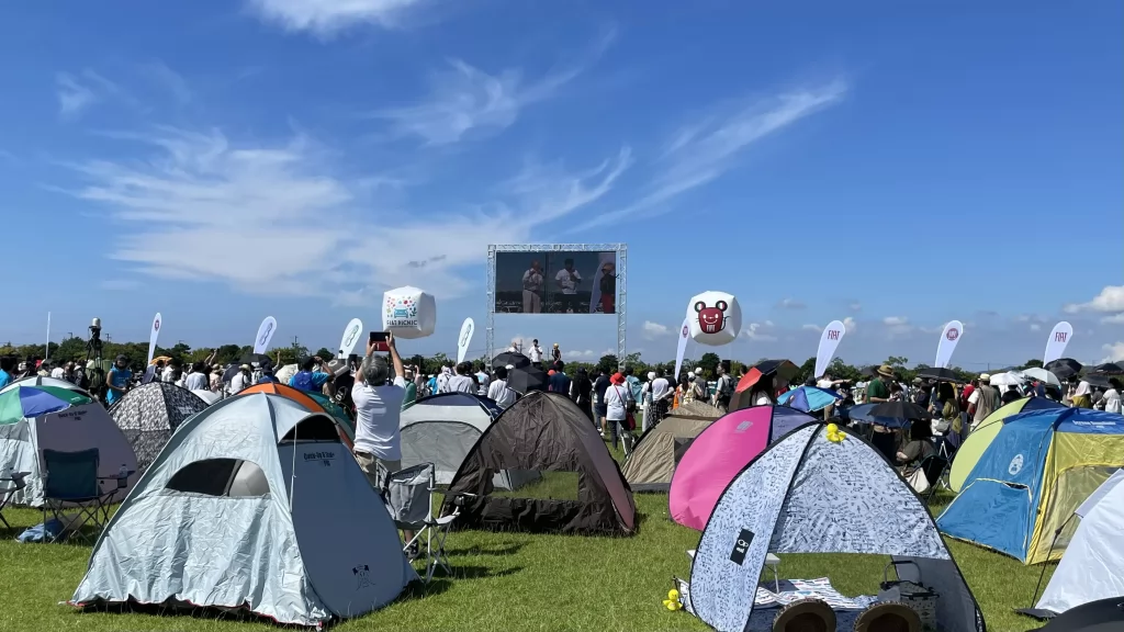 イベント当日は天気にも恵まれました。屋外用LEDビジョンはとても明るいので、日中の強い日差しのもとでもしっかりと映像を楽しむことができます。