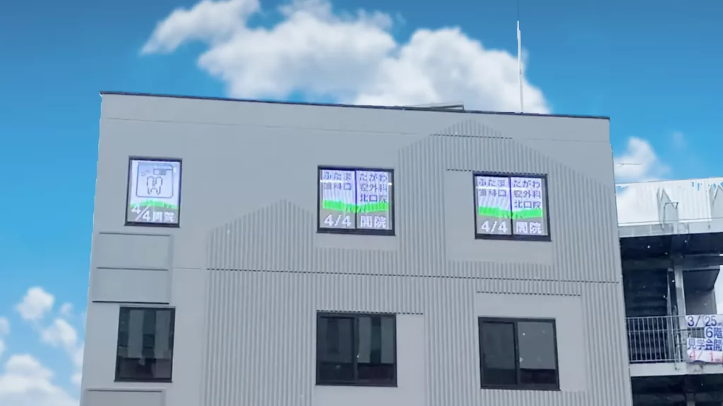 2022年4月4日(月)に開院した、ふたまたがわ歯科口腔外科北口院の窓面3カ所にウィンドウビジョンを導入しました。