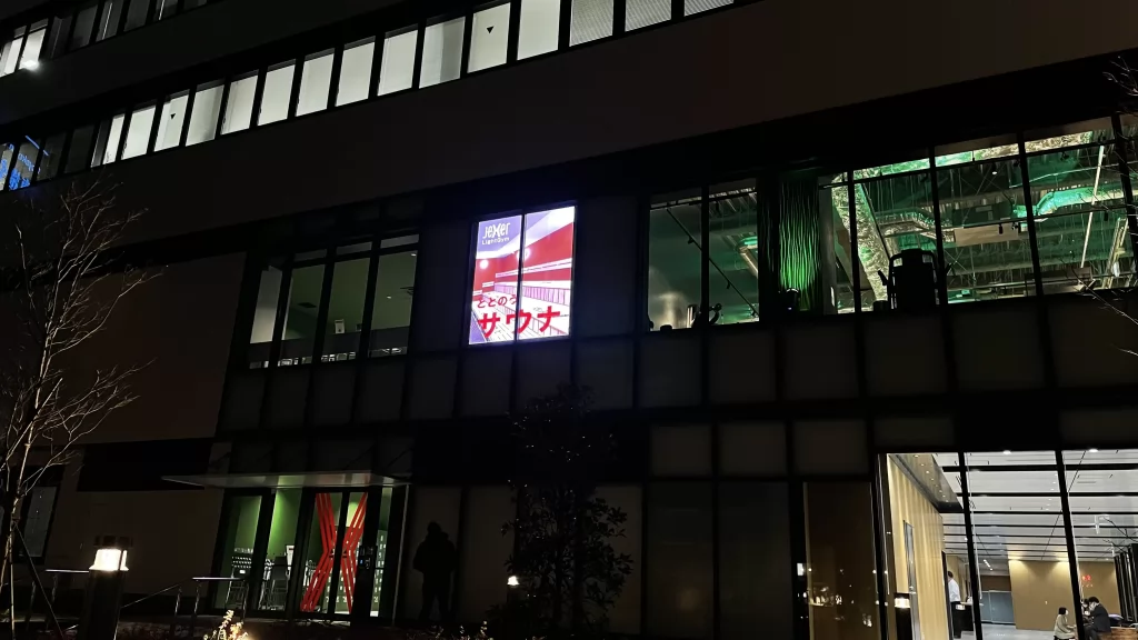 ジェクサー・ライトジム&スパ24仙台店の2階に屋外から見えるようにLEDビジョンを設置しました。2階にある一室の窓枠にLEDビジョンをはめ込む形で導入されています。