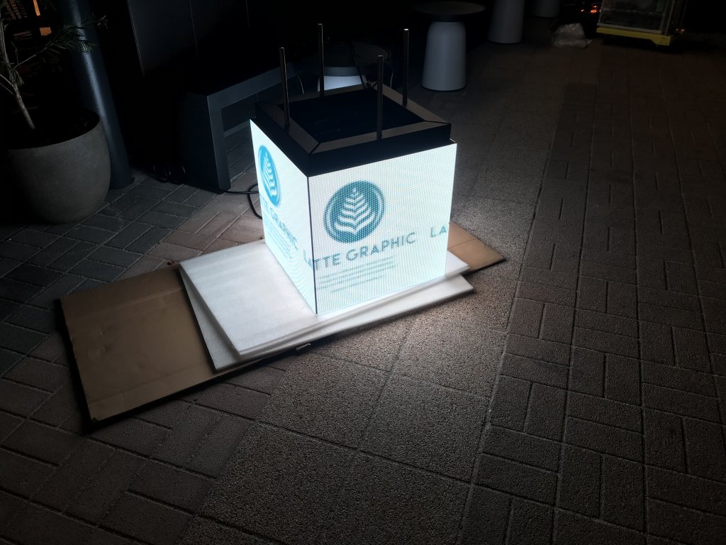 LATTE GRAPHIC新店舗に立方体型の特殊LEDビジョンを導入しました。