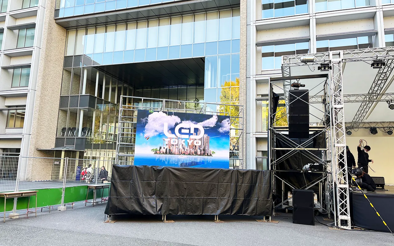屋外用のLEDビジョンは日中の太陽光であったり、ライブの照明より高輝度で利用可能のため、イベント時であっても存在感を生み出すことが可能です。