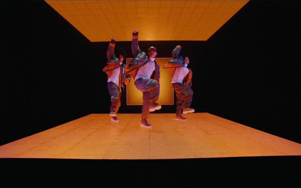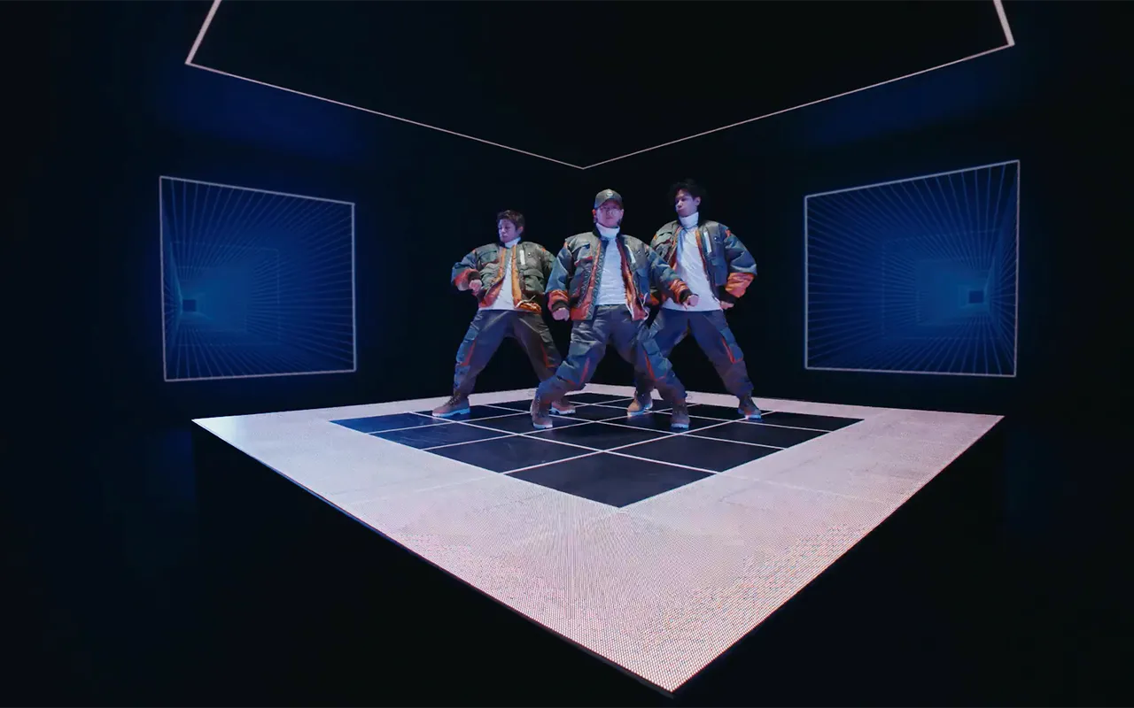 床用LEDビジョンは平米あたり2 t/㎡の耐久を誇る特殊強化ガラスを用いていることから、MV時のダンスパフォーマンスでも問題なく使用できます。