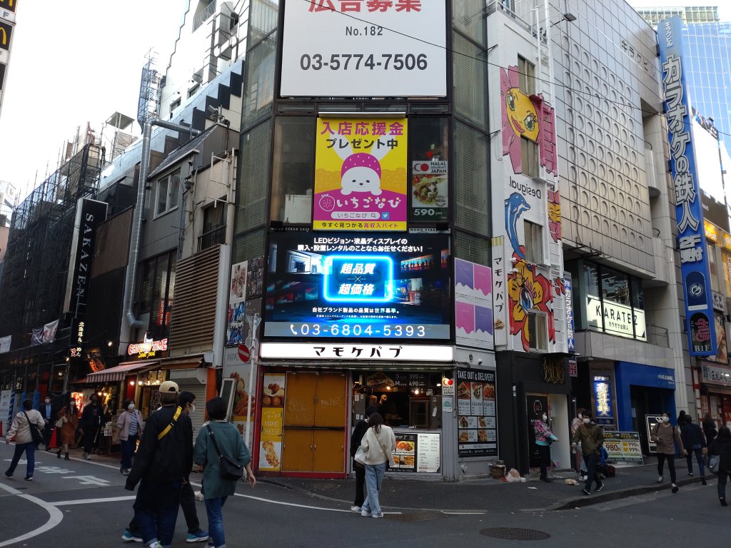 東京都渋谷区宇田川町、渋谷センター街の中心にLEDビジョンを導入しました。LEDビジョンは自社広告を流すほかにも、他社から広告を募って収益可能メディアとしての運営も可能です。昼夜問わず明るく、見やすいLEDビジョンは視認性抜群で、大きなビジョンは少し離れた人に向けての宣伝活動も可能です。