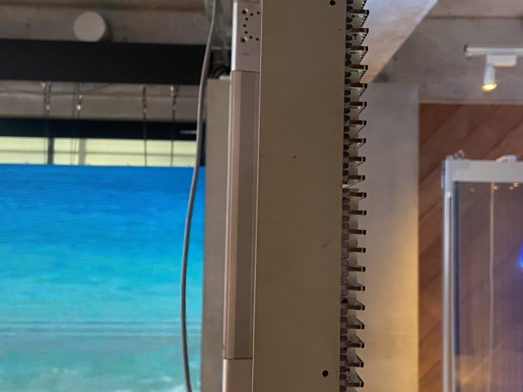 ビジョンの枠部分に配線が収納されているので、窓面や、屋内に設置しても配線が気にならずにすっきりとした見た目で、内観を損なうことなくLEDビジョンが導入できます。