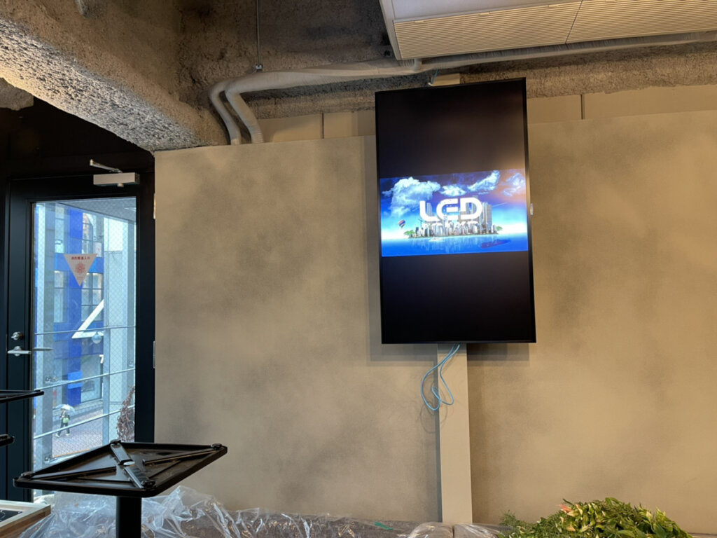 縦向きの表示に対応した液晶ディスプレイも導入されました。壁の柱部分に固定されており、縦に長いアート作品を自然に表示できるようになっています。