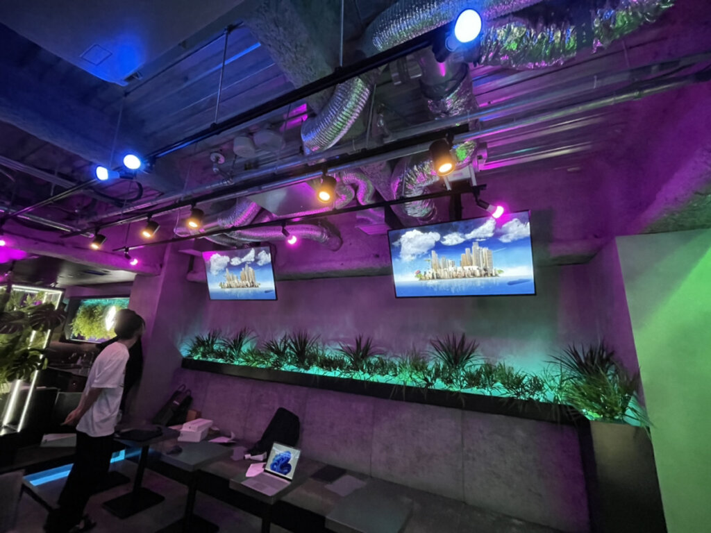 東京都渋谷区のシーシャBAR「Singularity Tokyo」でLED TOKYOのウィンドウビジョンと液晶ディスプレイが複数導入されました。