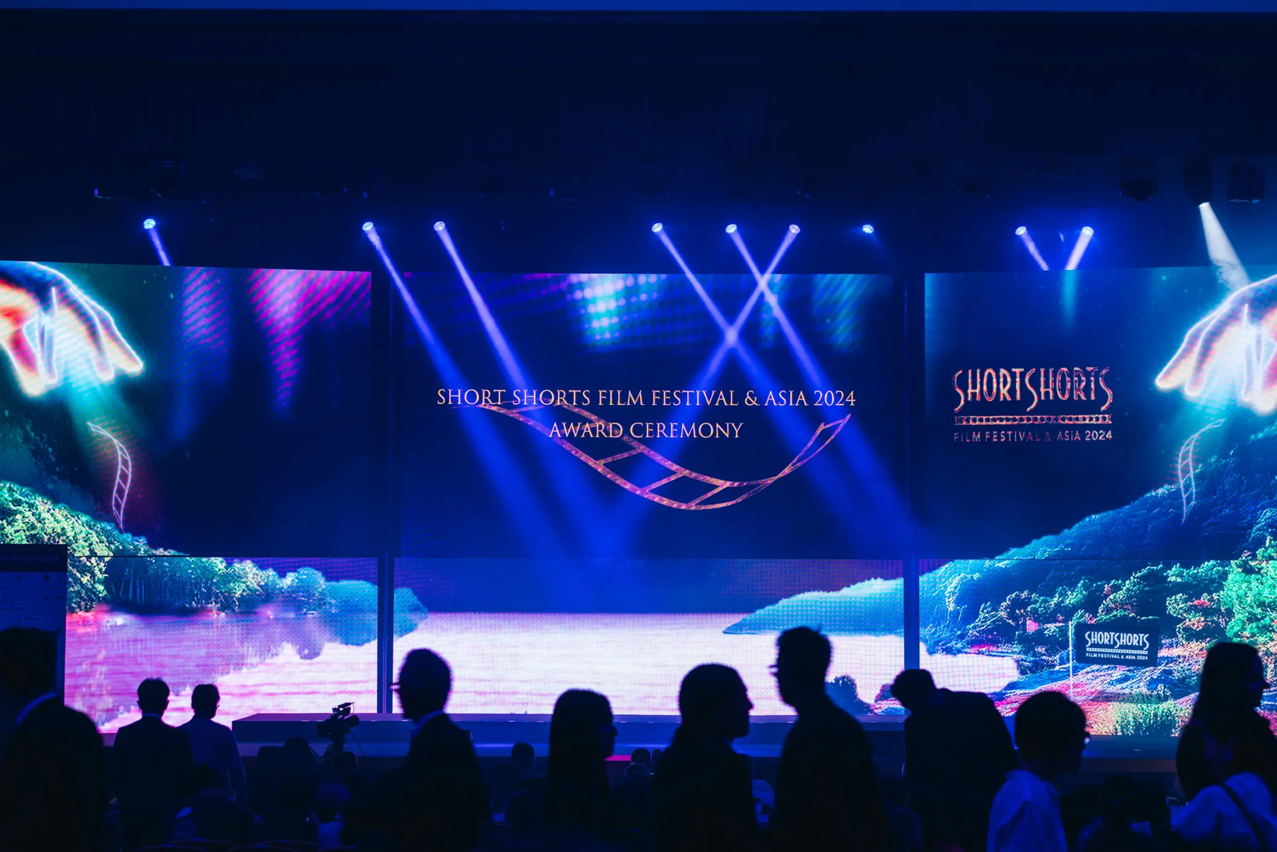 アワードセレモニーでは、各LEDスクリーンで異なる映像を放映するだけでなく、全スクリーンを連動させてSSFFのロゴを表示するなど、複数のスクリーンを活用した独自の演出が行われました。これにより、より一体感のある視覚的なインパクトを生み出し、観客の注目を集めました。