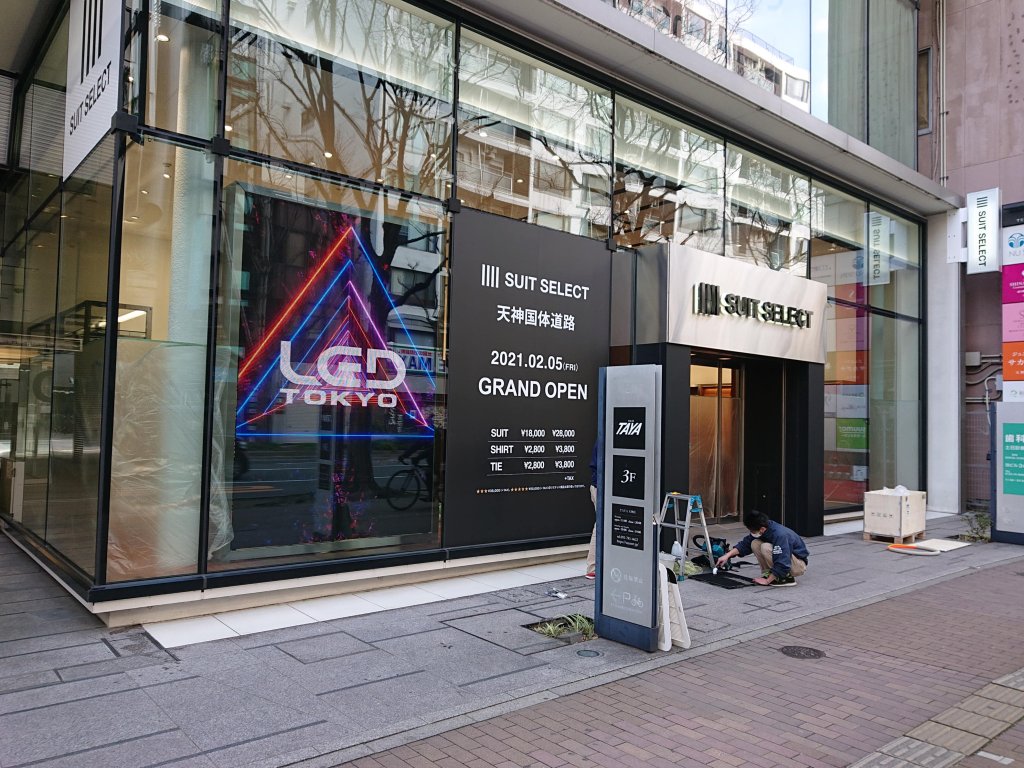 2021年2月5日、福岡県天神地区の国体道路沿いにオープンした『SUIT SELECT 天神』にLEDビジョンを導入しました。