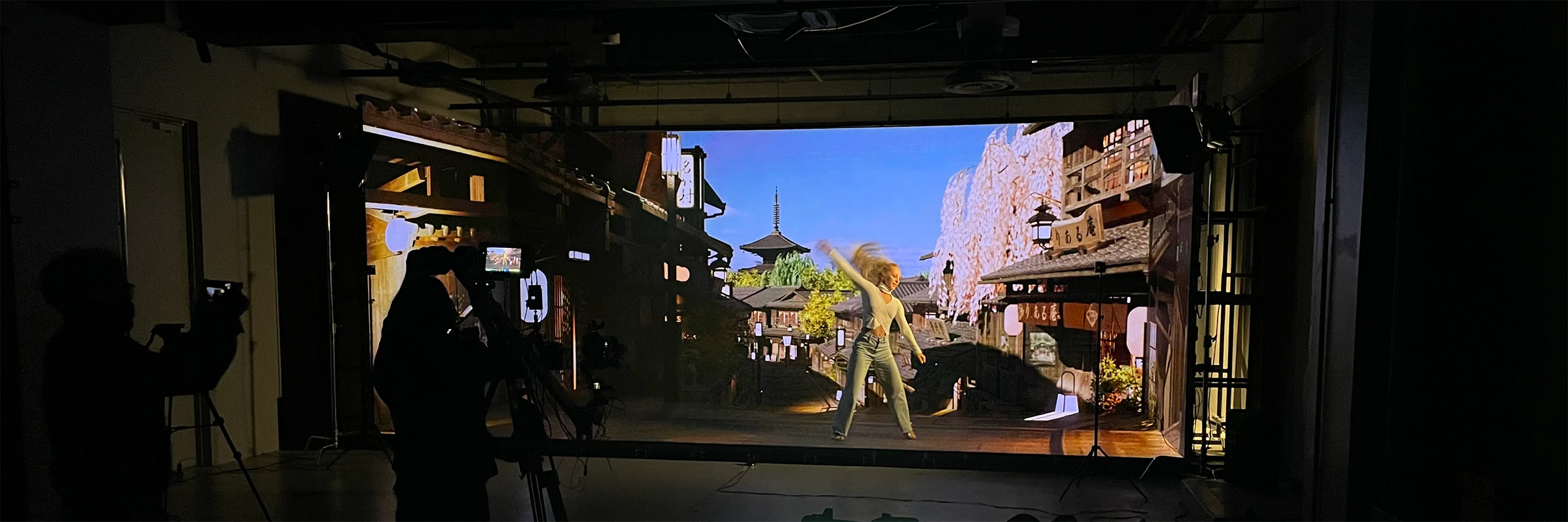 カメラと背景が連動することで、実際のロケ地に足を運ぶことなく、リアルで高品質な撮影が可能です。さらに、過去の世界や架空の生物など、現実には存在しない映像を背景に用いた撮影にもご利用いただけます。